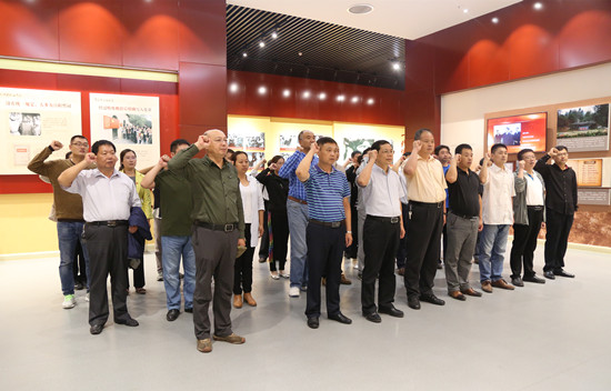 活动中,许琰书记带领365官网党员干部参观了“鉴史问廉”“光辉历程”“警钟长鸣”3个主题展厅。每个展厅都紧扣廉政文化,采用传统文化和现代科技相结合的方式,教育广大党员干部洁身自好、勤政廉洁。每到一处,大家都认真观看,仔细聆听,接受廉政文化教育。展厅里一组组翔实的史料、一幅幅真实的照片,一段段震撼的视频,使大家进一步增强了遵纪守法的自觉性和推进全面从严治党的责任感。在“光辉历程”展厅中,全体党员庄严地攥起右拳,面对党旗,在许书记的带领下,重温入党誓词,决心铭记入党誓言,不忘初心,砥砺前行。