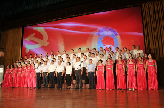 校领导带领全体党总支书记、副书记、分团委书记高唱红歌