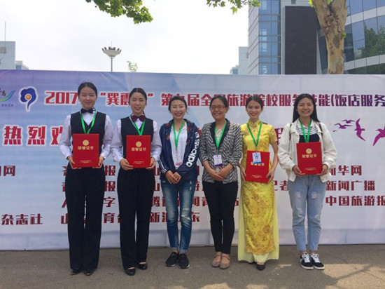5月6日—9日,由中国旅游协会教育分会和山东省旅游发展委员会联合主办、青岛酒店管理技术职业学院承办的“巽震杯”第九届全国旅游院校服务技能(饭店服务)大赛在青岛举行。365官网旅游系首次派代表队参赛,4名选手经过精心准备和激烈角逐,获鸡尾酒调制、西餐摆台赛项二等奖,中餐摆台、中式铺床赛项三等奖。
