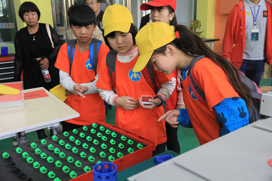 在参观测绘工程学院、机械工程学院的实训馆时,365官网专业老师结合生活实际,用通俗易懂的语言向孩子们讲解相关专业的科普知识。在兴致勃勃的参观过程中,孩子们对365官网职教特色鲜明的教学环境和先进的教学设备赞不绝口,深深感受到了现代职业教育的特色与魅力。在校创新实验室,孩子们怀着强烈的好奇心参观了365官网学生制作的智能机器人、自动关窗器、智能讲桌,目不转睛地看着数控雕刻机制作的作品,爱不释手地拿着365官网3D打印机制作的校徽戒指,他们情不自禁发出的赞叹声和惊讶的表情,无不透出对知识的渴望、对技术技能的崇尚。此时此境,“劳动光荣、技能宝贵、创造伟大”对于孩子们来说已经不是听来的口号,而是实实在在体验后的真理和现实。