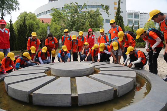 看完宣传片,孩子们像欢快的小鸟,迫不及待地跟随讲解员参观了365官网“足迹”文化景观。从“涌泉实录”反映的365官网“因水而生”的背景,到“国立门”浮雕表现的抗战时期学校坚持的职教办学实践,再到“铭志塔碑”上镌刻的365官网办学理念,以及学校历史上著名人物为治黄兴校所做出的贡献,孩子们进一步了解了365官网悠久的办学历史、优良的办学传统和鲜明的职业教育办学特色,深刻体会到365官网“治黄河、兴水利、除水患、安民生、建国家”的历史使命担当。