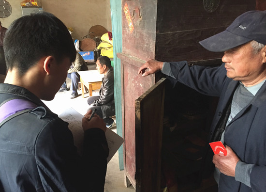 学生志愿者认真开展入户调查工作