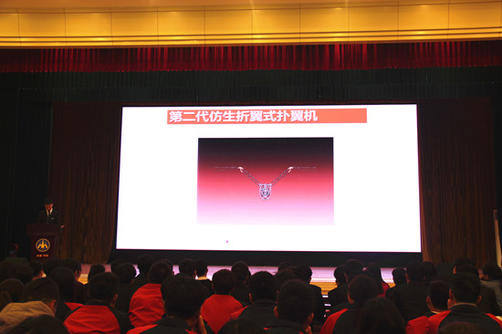第二部分主讲人为郑州大学璀璨科技社社长宋纪元。宋纪元在大学生科技创新领域有着骄人的成绩,他为大家讲述了自己如何在家庭的变故中克服困难,自立自强,努力实现自己人生价值的奋斗历程,并展示了他的科技作品——仿生折翼式扑翼机、语音仿生手语双向翻译系统、可急翻跳跃的全地形侦察球型机器人、水下巡游机器人、激光雕刻机等,同时他还成立了自行车义务维修服务队,为身边的同学做志愿服务。