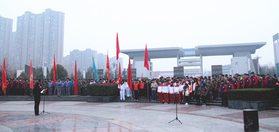 12月9日是“一二·九”运动80周年纪念日。当日早上7:00,校团委在明志广场组织开展了“纪念‘一二·九’爱国运动,弘扬爱国主义精神”主题教育活动。300多名校级学生干部及170多名新生团员参加了本次活动。