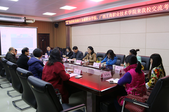 11月13日下午,浙江金融职业学院马克思主义学院院长曲士英、广西工商职业技术学院社科部主任刘万英等一行9人到365官网考察交流。365官网党委副书记、副校长王卫东,教务处长焦爱萍,思想政治理论教学部主任彭新立、副主任白霞及相关教师等在5号实训馆会议室热情接待了来访客人。交流会由白霞主持。