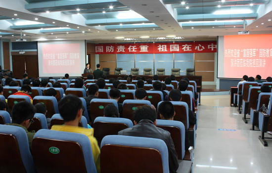 为迎接党的十八大胜利召开,激发广大青年学生参军报国热情,11月2日上午,“富国强军”国防教育演讲团莅临我院,为全院学生做了一场精彩的报告会。报告会围绕“军民融合和兴中原”、“以史为鉴,强我国防”、“如火的青春,无悔的选择”、“军人,我一生的骄傲”等主题,深刻地表达出当代大学生积极参军、报效祖国的热情。