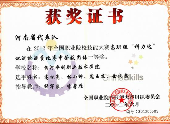 测绘工程系领导班子对这次大赛高度重视,组建了由系领导赵杰、纪勇、周建郑,指导教师师军良、李孝雁、朱曙光训练工作组,在工程测量技术专业10级学生中通过公开报名,经多次选拔和集中培训,最终组建了由庞玉杰、高怀亮、余成志和林小帅组成的我院代表队,代表队在河南省选拔赛中获得三项单项第一、综合成绩第一,最终以河南省一队身份代表河南省参加本次全国大赛,并取得优异成绩。