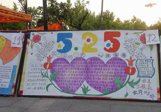 与此同时,在扬帆路上,内容丰富的手抄报展板引起很多学生驻足观看,这是学生处组织的首届心理手抄报展示现场。5月初,各系积极响应学生处的号召,组织学生查找心理知识资料、购买画具,亲手绘制。同学们以饱满的热情、丰富的想象、多彩的形式制作出一张张精美的手抄报,既提高了心理健康意识,普及了心理健康知识,也表达了做一名高素质学生的美好心愿。