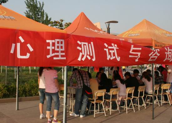 另外,现场心理测试与咨询也在热烈进行,院心理咨询中心的专、兼职教师走出咨询室,与学生面对面亲切交流,帮助学生了解自己的心理和个性,释疑解惑。