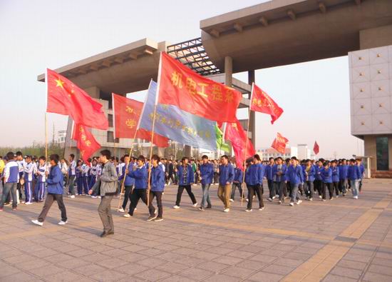 清晨7点,校门外成为旗帜的海洋,我院机电系、测绘系、交通系上千名学生早早汇聚于此。7点半,同学们排着整齐的队伍,组成5路纵队从校门口出发,前往郑开大道指定路段为选手们助威呐喊。中午近11点,专业组选手飞快的跑来,其中我院教师李冰连续多年参加了本项赛事,在我院师生的加油助威中冲向终点。选手们坚持不懈、顽强拼搏的精神鼓舞着同学们。