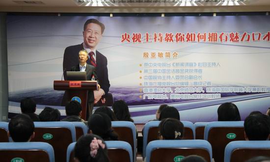 3月27日下午,我院学术报告厅座无虚席,气氛热烈。第三届中国金话筒金奖得主、原中央电视台《新闻调查》主持人殷亚敏先生应邀为我院师生作了一场主题为“如何拥有魅力口才”的讲座。我院领导刘国际、王卫东、刘紫婷和数百名师生聆听了殷亚敏的讲座。