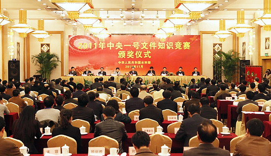 日前,水利部在京举行2011年中央1号文件知识竞赛颁奖仪式,历时半年多的2011年中央1号文件知识竞赛圆满落幕,我院获得优秀组织奖。水利部部长陈雷、副部长周英出席颁奖仪式,并为获奖单位和个人颁奖。