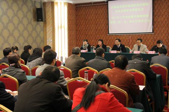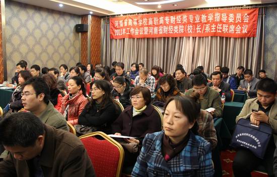 11月11日,河南省高等学校高职高专财经类专业教学指导委员会2011年工作会议暨河南省财经类院(校)长/系主任联席会议在我院隆重召开。来自河南省29所高职高专院校的系主任、专业骨干教师以及3家企业、2家出版社共100余人参加了此次大会。我院党委书记张惠贞到会祝贺并就学院概况、设置与发展、办学特色等方面向来宾做了介绍。