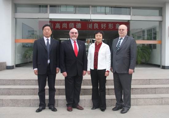 在行政楼三楼会议室,双方进行了会谈交流。张惠贞书记对主席和执行官两位的到来表示欢迎,并简要介绍了学院近两年来的发展变化,对双方已经合作举办的“物流专业”项目进展表示满意。Tony Brandt先生表达了希望扩大合作专业和规模的意愿。双方互赠礼品,并合影留念。