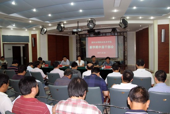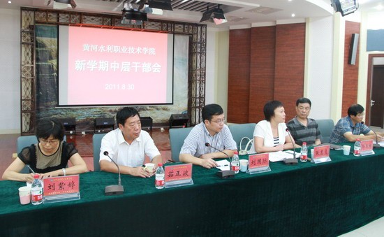 党委书记张惠贞在会上做重要讲话,要求全体中层干部一定要统一思想,把思想统一到人才培养这项中心工作上来。她说,回顾十年来学院的发展,我们坚定不移地走高职教育道路取得了辉煌成绩,学院在硬件建设(如办学规模、新校区建设)和软件建设(如师资队伍、人才培养水平评估、示范性建设)上取得双丰收。目前,我们仍然要坚定不移地走高职教育发展道路,坚定不移地抓内涵建设,把示范性高职院校建设不断推进。