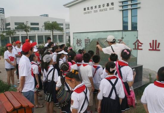 上午,开封市一师附小30名小记者来到我院,与我院团委书记周志琦、职业技能训练中心主任关六三、科研外事处副处长陈琳、团委副书记谷献晖、各系分团委书记以及我院“永远跟党走”暑期社会实践活动小分队的20名同学一起,参观了测绘实训场、数控机床车间、鲲鹏山等场馆。