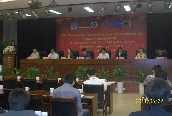 5月21-22日,由我院承办的2011信息科学、自动化与材料系统国际学术研讨会(ISAM2011)及其分会2011计算机科学与信息工程国际研讨会(CSIE2011)在郑州中天迎宾馆成功召开。会议主办方国际科教研究者协会会议执行主席景阳、武汉科技大学田仙枝,我院院长刘国际,院科研外事处处长张春满、副处长陈琳,自动化工程系领导以及邀请到的专家和来自台湾的学者出席会议。