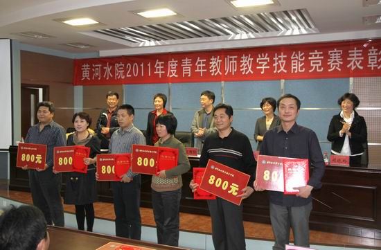 表彰大会上,孙五继副院长宣读了《beat365唯一官网关于2011年度青年教师教学技能竞赛获奖教师和系部的表彰决定》,对本次竞赛活动中获奖的40名青年教师和13个优秀组织单位进行表彰。随后,出席大会的领导为受表彰的个人和集体颁发荣誉证书和奖金。获奖集体代表水利系主任王俊及获奖青年教师代表崔虹分别做了发言。