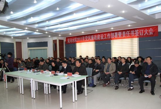 会上,党委副书记、纪委书记王卫东对我院2011年党风廉政建设工作进行了全面部署:一、认真落实“三重一大”、“党务公开”、“政务公开”等制度,逐步建立健全科学民主决策机制;二、修订院系两级党风廉政建设责任目标,全面推进党风廉政建设和反腐倡廉工作;三、扎实做好2011年政风行风评议工作;四、在全院范围内开展“查找廉政风险,构筑拒腐防线”活动,逐步建立健全对廉政风险排查和防范的长效机制;五、指导系部建立健全党政联席会议制度,全面落实民主集中制;六、加强对基本建设、财务管理、招生就业、干部选拔、教师选聘、教学科研、资产管理、后勤服务、以及系部等重点部位和关键环节的监督管理,加强内部审计工作;七、深入开展廉政教育,使廉政教育常规化、制度化、广泛化;八、加强信访和办案力度,严格实行责任追究;九、坚持厉行节约,压缩公务开支,进一步加强对公务用车、公务招待、公务活动的管理。