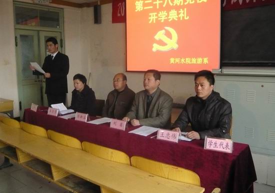 11月14日,旅游系举办了第28期入党积极分子培训班开学典礼。系党总支书记彭新立、副书记刘岩、分团委书记王崇景等参加了开学典礼。