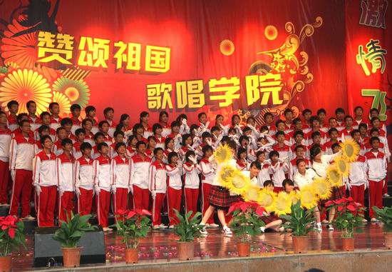 在各系合唱团的展演结束之后,院领导、老师和同学们一起高唱《歌唱祖国》,表达对祖国61岁华诞的深深祝福。