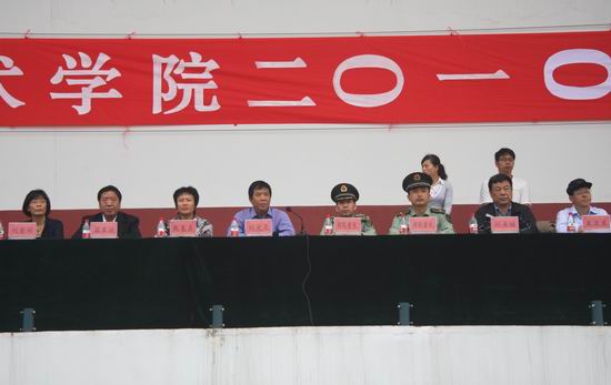 军旗猎猎,军歌嘹亮。9月21日上午,我院2010级学生军训阅兵式在祥云体育场隆重举行,经历十天紧张艰苦的军事训练,参加军训的同学们以整齐的军容和昂扬的士气,向学院和承训部队领导展示了军训成果。我院领导刘宪亮、张惠贞、孙五继、茹正波、王卫东、刘紫婷,驻汴某部政委等,以及全院相关部门负责人出席会议。阅兵式由党政办公室主任杨士恒主持。