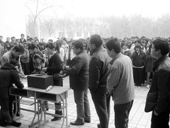 4月20日,信息工程系在4号实训楼前举行全系师生向青海玉树灾区捐款仪式。
