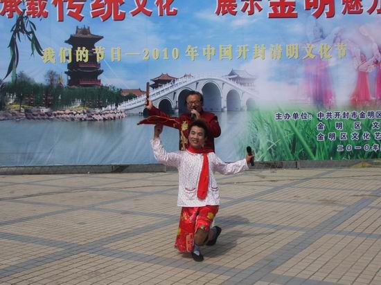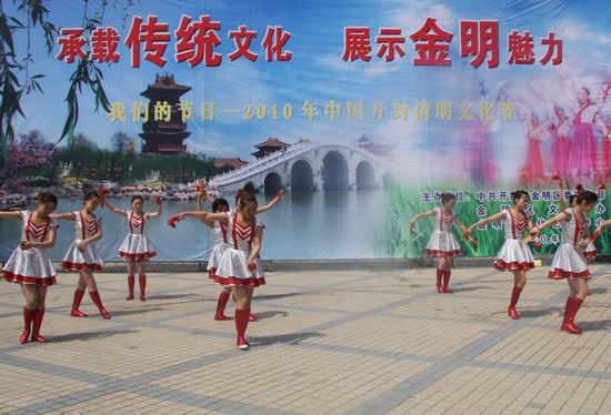 4月4日上午,在党委宣传部和团委的组织下,我院部分师生来到西郊乡广场,参加了开封清明文化节金明区专场演出。