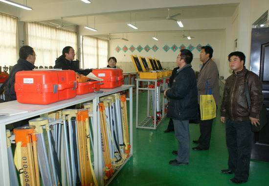 下午, 甘肃林业职业技术学院测绘工程系主任王晓春与我院测绘系主任赵杰、副主任纪勇,以及专业带头人李聚方、许加东、王浩、王琴等教师就示范建设情况进行了座谈。客人们对测绘系示范建设所取得的成果表示赞赏,并希望能进一步加强沟通和联系。王主任一行依次参观了测绘系各实训室和测绘仪器展览室,并对各实训室的功能做了了解。