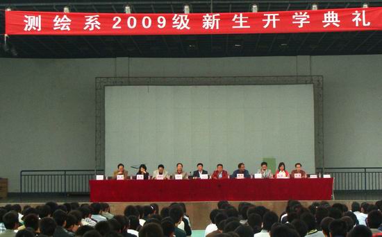 金秋九月,硕果飘香。9月11日下午,测绘工程系在风雨球场举行2009级新生开学典礼,院党委副书记、纪委书记王卫东出席了典礼。系党总支书记周建郑、主任赵杰,系有关领导和各教研室主任,以及河北省第三测绘院阴衍勇处长参加了大会,系党总支副书记刘广社主持开学典礼。
