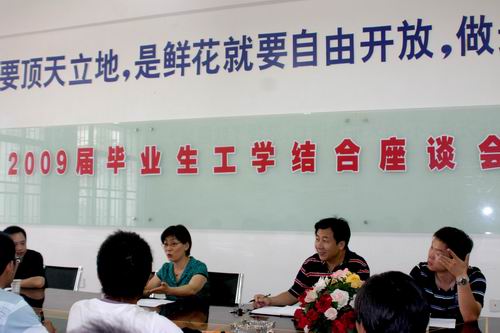 座谈会上,与会学生踊跃发言,积极讨论了工学结合的组织形式、工资待遇和生活条件,指导教师在工学结合中的重要作用,学生在工学结合中素质的提高等三个方面。大家纷纷表示,工学结合不仅能提高学生实践动手能力,同时在培养学生人际交往、办事能力、自立能力、良好的时间观念等方面都起到重要作用;学院应紧紧围绕“校企合作、工学结合”的育人理念,继续安排学生参加工学结合,以便于了解企业,了解社会。