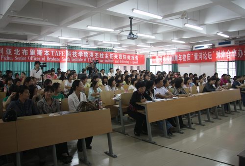 洪丕柱先生从澳大利亚的职业教育情况、职业规划状况、TAFE课程发展状况和澳洲培训质量系统四个方面进行了演讲。其风趣的语言,幽默的谈吐以及生动的举例,赢得了在场师生的共鸣,也带动大家进行深层次的思索。每一主题演讲完毕,洪先生还专门与在场师生进行了交流,并就大家提出的问题做了认真、详尽的解答。