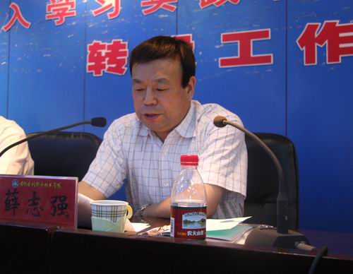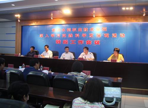 5月6日下午,我院深入学习实践科学发展观活动转段工作会议在东校区学术报告厅召开。省管高校学习实践活动第四指导检查组组长薛志强及检查组成员黄泽峰、仝锋,院领导刘宪亮、张惠贞、孙五继、茹正波、王卫东、刘紫婷出席会议,学院全体中层干部、教授和省管专家、各民主党派负责人、省市人大代表、政协委员、离退职工代表、学生代表与会。会议由学院学习实践活动领导小组常务副组长、党委副书记张惠贞主持。