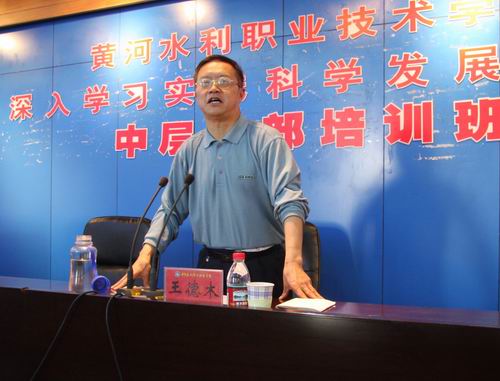 4月11日下午,应我院邀请,河南大学哲学与公共管理学院硕士生导师王德木教授,在东校区学术报告厅作了题为《学习实践科学发展观,构建和谐社会》的专题报告。院领导和全体培训班成员聆听了报告。院党委副书记、院深入学习实践科学发展观活动领导小组常务副组长张惠贞主持报告会。