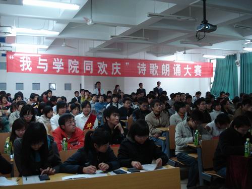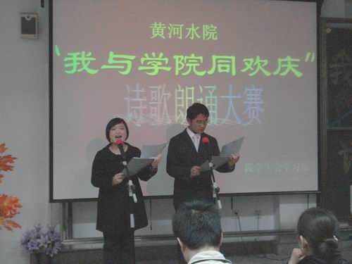 3月24日,院学生会主办的“我与学院同欢庆”诗歌朗诵比赛总决赛在教学楼2503举行。出席此次比赛的有院团委副书记谷献晖、胡楠、李聪、赫黎闻以及各系部学生分会主席。