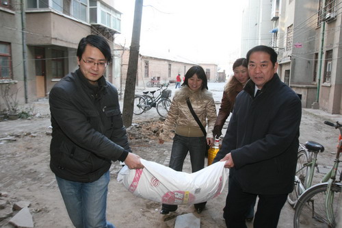 1月13日,冒着严寒,我院组织部部长张豫东等来到我院帮扶单位小北岗社区,代表我院向社区捐赠了一台电视机。之后,在小北岗社区主任侯岗路的陪同下,张豫东部长深入社区慰问了困难居民,送去了面、油等过节用品。