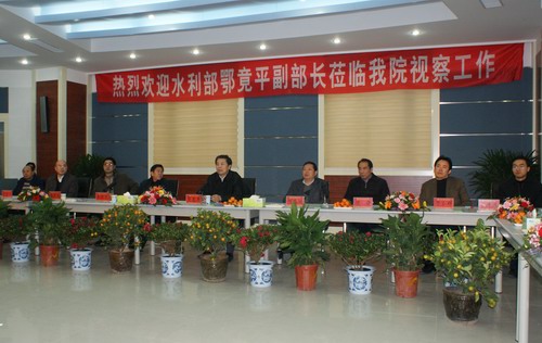 2008年12月26日下午3点50分,水利部副部长鄂竟平带领水利部水文局副局长蔡建元等有关领导到我院视察工作,河南省省长助理何东成,省水利厅厅长王仕尧、副厅长于合群,开封市委副书记顾俊、副市长李留心,我院领导刘宪亮、张惠贞、孙五继、茹正波、王卫东等陪同视察。