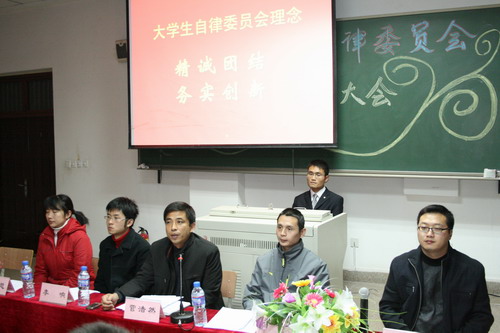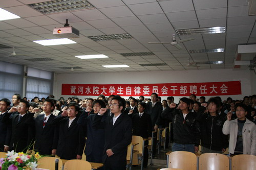 11月27日下午,黄河水院大学生自律委员会2008年聘任大会在教学楼6101召开。学生处处长菅浩然、副处长朱焕立、李响、学生管理科科长马晓慧、宿管科科长兼院自律委员会秘书长柴杉出席了会议,院自律会的主要学生干部及新聘任的学生干部参加了本次会议。