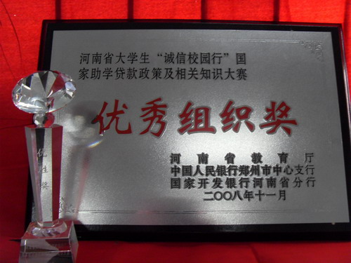 11月13日,河南省大学生“诚信校园行”知识大赛决赛在洛阳师范学院举行,我院获得优秀组织奖及优胜奖。