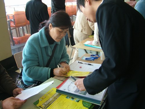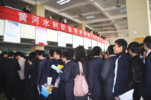 上午9点,洽谈会正式开始。餐厅二楼的招聘大厅人头攒动,热闹非凡。4800多名2009届毕业生忙着把自己精心准备的求职材料和简历递到招聘人员手中,并抓住机会展示自己,希望能够在洽谈会中找到自己施展才华的舞台。本届招聘会共有80余家用人单位参会,共提供水利水电建筑工程、工程测量、机械设计与制造、会计、市场营销等多个专业的工作岗位2000多个。