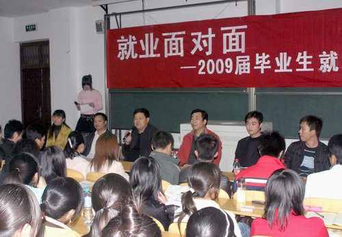 11月6日下午,由招生就业中心主办的“就业面对面”暨2009届毕业生就业宣介活动在教学楼6202举行,招生就业中心全体工作人员及学院各系部学生代表参加了宣介活动。