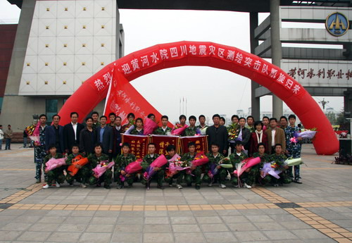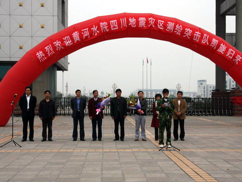 副院长刘紫婷对突击队的工作给予了高度的肯定,她说,在“5.12”大地震灾后重建的关键时刻,突击队放弃了中秋佳节和家人团聚的机会,千里驰援灾区重建,以认真负责的态度,不辞辛苦,甘于奉献,为彭州地区重建测量奋力奔波,为灾区人民重建家园劳心劳神。突击队通过实施现场教学、集中培训和专门指导,完成了对四川水院学生测量技能培训工作,圆满完成了对口支援任务,用辛勤的汗水描绘出了葛仙山镇老百姓的希望。这既是一次意义深远的社会实践,更是一次教与学的“双赢”。他们在灾区的工作充分体现了黄河水院人重大义、顾大局、讲大德、献大爱的优良品质,是黄河水院人的优秀代表。她代表院党委、院行政及全院16000名师生员工向突击队表示热烈的欢迎和崇高的敬意!