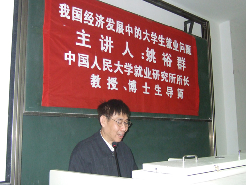 10 月24 日晚,应我院招生就业中心邀请,中国人民大学就业研究所所长、博士生导师姚裕群教授在教学楼6202教室作了“我国经济发展中的大学生就业问题”专题报告。