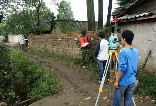 又讯,自9月26日起,我院测绘突击队继上次开展的GPS-RTK的集中强化培训后,又对四川水院学生分别进行了10学时和60学时的地籍调查理论与实践教学,培训历时6天。地籍调查理论方面培训主要是组织培训学习了《彭州市人民政府关于加强灾后农村住房重建工作的实施意见》(彭府发[2008]36号)、《彭州市集体建设用地地籍调查相关规定》。地籍调查实践方面主要是进行地籍调查具体实施细则的培训,就地籍调查的作业流程、如何填写地籍调查表、如何绘制宗地草图、如何进行地籍编号、如何处理有争议宗地等问题进行了详细的讲解和模拟训练。