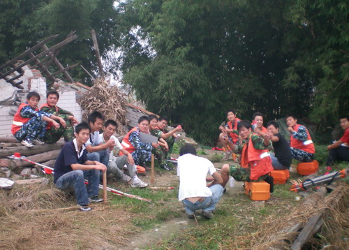 测绘突击队员深深体会到灾区人民的难处,在满足测量精度的前提下,尽量提高作业速度。白天工作累了,突击队员们在灾区的废墟旁休息一下,吃着自带的干粮,但是各个都是劲头十足,没有任何的怨言。晚上回到驻地还要绘图至深夜。队员薛树林说:“能为灾区做点事,感到很充实”。在休息之余,队员们帮助家里没有劳动力的灾民做农活,做些自己能所力及的事情。大家都觉得:这只是志愿者爱心的传递,是大爱无疆的延续。