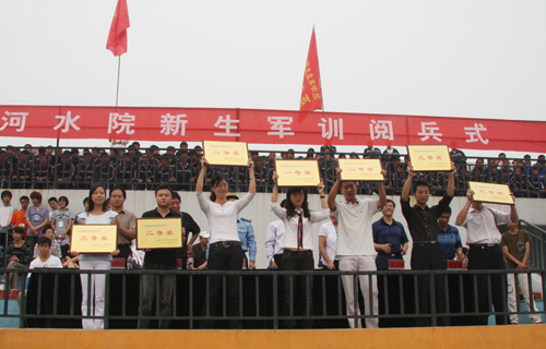 阅兵仪式结束后,学生处处长菅浩然宣布了军训总评获奖系(部)、优秀教官、十佳教官名单。院领导和部队首长向获奖单位和个人颁发了奖状。