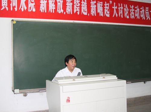 党委副书记、纪委书记王卫东首先传达了省委书记徐光春和省委副书记、代省长郭庚茂在省委八届八次全会上的讲话精神,全省组织开展“新解放、新跨越、新崛起”大讨论活动电视电话会议精神,以及省高工委、教育厅党组《关于开展“新解放、新跨越、新崛起”大讨论活动方案》的安排部署。