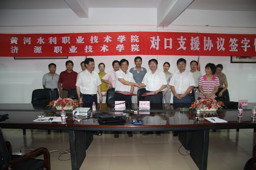 7月24日下午,济源职业技术学院院长苏万益、副院长赵东保等一行4人来到我院,与我院领导刘宪亮、孙五继、刘紫婷等进行会谈并签订对口支援协议。