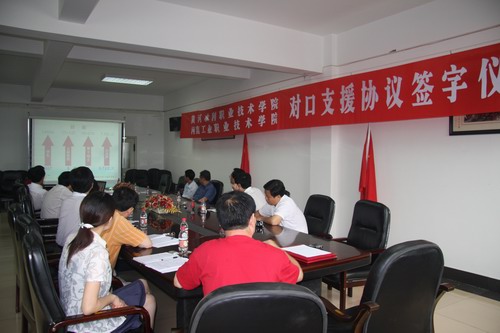 在行政楼二楼会议室,党委书记、院长刘宪亮向客人介绍了我院近几年的发展情况。在随后的座谈中,双方就国家精品课程建设、示范性院校建设等工作进行了交流,并签订对口支援协议。