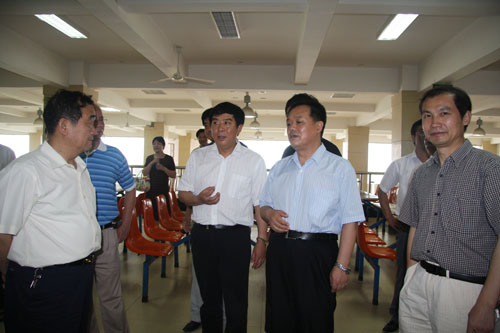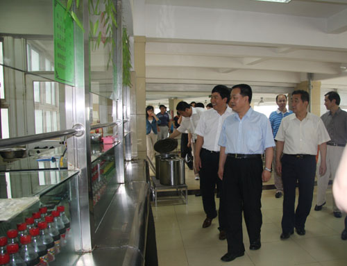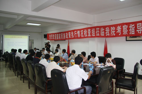 在我院学生餐厅,检查组成员考察了我院回民餐厅,听取了我院领导的介绍。之后,检查组一行在行政楼二楼会议室与我院领导及有关部门负责同志座谈。党委书记、院长刘宪亮向检查组汇报了我院的民族政策落实情况。他说,我院认真贯彻国务院33号文件,在坚持民族平等团结、培养少数民族干部、尊重少数民族风俗习惯、尊重和保护少数民族宗教信仰自由等政策上,都严格按照文件规定执行。同时,学院能够严格落实各项对少数民族学生的优惠政策,积极营造民族团结进步的良好校园氛围,从生活、学习、思想、情感等多方面给予少数民族学生以关怀和爱护。在今年的招生中,我院正在考虑优先录取地震灾区学生,特别是灾区的少数民族学生,并为他们最大限度地减免学费。